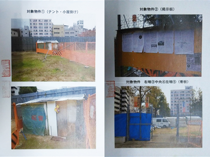 ▲ 퇴거 대상인 텐트와 판자집 [출처: 가마가사키 해방회관 블로그] |