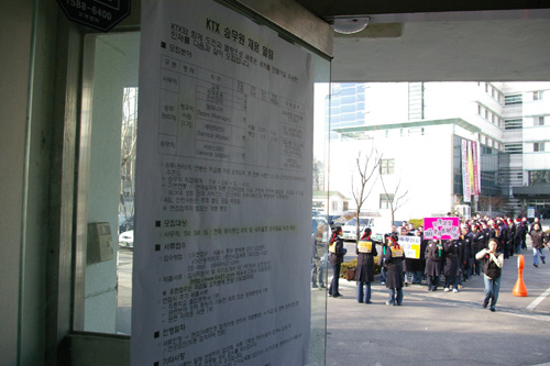 KTX관광레저가 낸 채용공고에서 접수기간은 2월 27일부터 3월 3일까지이다. 현재 총파업을 준비 중인 398명의 KTX 승무원들은 오는 3일까지 접수를 하지 않으면 일자리를 빼앗길 상황이 놓여 있는 것이다.