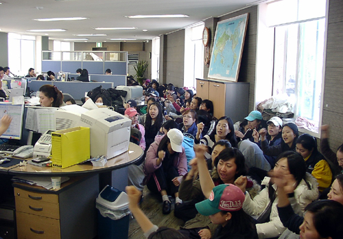 ▲ 23일 오후 2시경 KTX승무원 150여 명이 KTX관광레저 사무실을 항의 방문했다. |