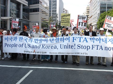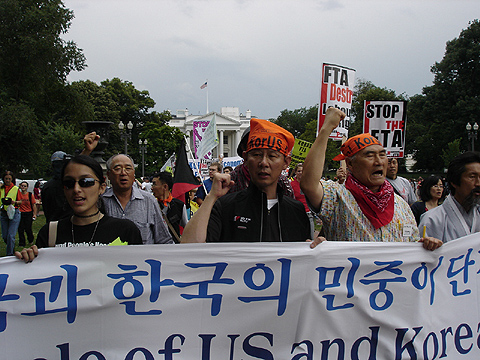 신자유주의와 싸우기 위헤 미국의 수도 워싱톤에 온 '신자유주의 저지, 한미 자유무역 반대 재미위원회(MORFNG :Mobilize and Organize to Resist FTAs and Neoliberal Globalization )’와 한국에서 온 한미FTA저지 범국민운동본부 미국원정투쟁단 등 두 개의 연대 조직 구성원들은 미국이 국제 사회내에서 경제의 헤게모니를 유지하기 벌이고 있는 행태들을 폭로했다.