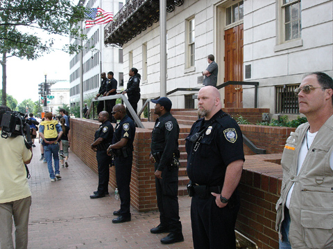 사실 세계은행(World Bank)과 USTR 건물 앞에는, 경찰들이 급파되기도 했다. 혹시 발생할지 모를 사태에 대한 경계하는 모습이 역력했다. 그러나 이날 집회 참가자들이 이미 계획을 통해 밝혔 듯이 어떠한 불법 행위도, 폭력적 행위도 진행하지 않았다. 참가자들은 폭력이 아닌 좀더 희망적이고 성공적 전술을 택했기 때문이다.
