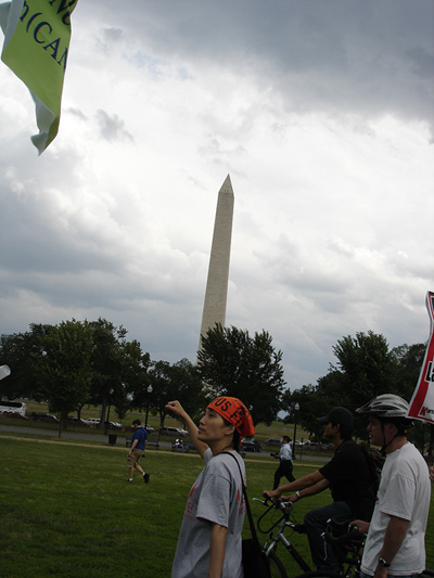 참가자들이 미 무역대표부 그리고 워싱톤 기념비 근처까지 행진해 갔을 때 행진 참가자들은 약 200여명으로 불어나 있었다.
