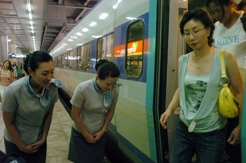 승무원들은 2시40분에 도착한 열차의 승객들에게 "안녕히가십시오."라는 인사로 6개월만의 승무업무를 시작했다.