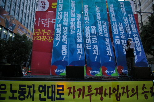 집회에서 김태진 공공연맹 부위원장은 “노무현 정권은 비정규직의 눈물을 닦아주는 손이 아니라 비정규직 노동자들을 죽이는 악마의 손이다”라고 비판하고, “노동자를 끊임없이 갈라치기하고 분열시키는 노무현 정권에 우리는 계급적 산별로 맞서자”라며 “비정규직 노동자들의 힘찬 투쟁으로 사회공공성을 강화하자”고 목소리 높였다.
