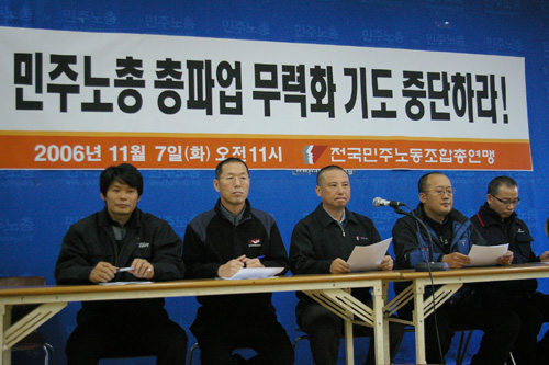 7일 민주노총은 긴급 기자회견을 갖고 “민주노총 총파업을 무력화시키기 위한 공무원노조 찬반투표 방해공작을 엄중히 규탄한다”고 나섰다. 조준호 민주노총 위원장은 “민주노총의 총파업을 막을 수 있다는 것은 시대착오적인 생각”이라며 “정부는 기본적인 노조활동을 방해하는 것을 넘어 자유로운 의사표현 마저도 막으며 기본권을 침해하고 있다”라고 강력히 비판했다.