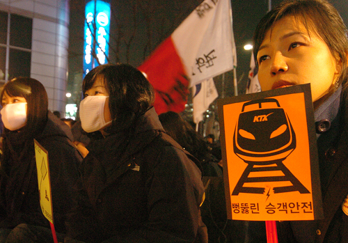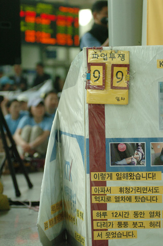 철도공사의 직접고용 정규직화를 요구하며 파업에 들어간 KTX승무원 투쟁이 벌써 1년을 넘겼다. 서울역에 이어 용산역에서 철야농성 투쟁을 하고있는 새마을 승무원들도 오는 3월26일이면 투쟁 100일째를 맞이한다.