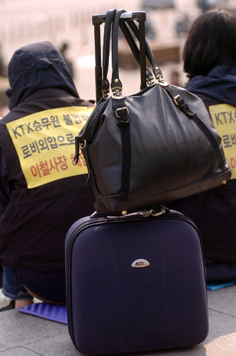 ▲ 기자회견이 끝나고 전국을 돌며 집중투쟁에 나설 KTX·새마을 승무원들이 짐을 싸들고 서울역에 모였다. |