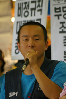 김경욱 위원장은 홈에버 상암점에서 농성을 벌인지 21일 째였던 지난 7월 20일, 경찰에게 강제연행 된 바 있다.