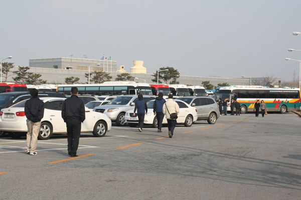 ▲ 오후 2시경, 퇴근버스로 향하는 현대자동차 아산공장 비정규직 노동자들 |