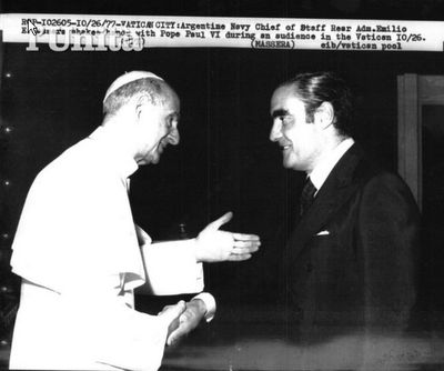 ▲ 바티칸에서 교황 바오로 6세가 "더러운 전쟁"의 설계자, 에밀리오 마쎄라 해군사령관을 환영하고 있다. [출처: http://www.globalresearch.ca] |