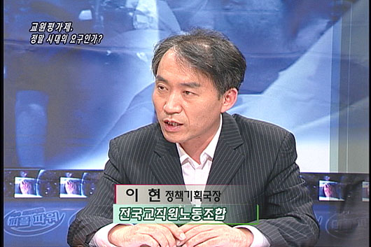 이현 / 교원평가 시범실시 과정에는 많은 문제점들이 있습니다. 우선 교원평가가 몰고 올 엄청난 변화에 비해 시범실시 기간이 불과 7개월에 불과합니다. 반면에 자립형 사립고는 6년동안 시범실시를 하고 있습니다. 따라서 시범운영의 결과를 보면 객관적인 근거 자료가 있을 수 없습니다. 7개월이라는 짧은 기간에 새로운 제도가 어떤 효과나 결과를 가져올지 예측하는 것은 불가능합니다. 그러다보니 시범실시 결과로 제출된 것은 오로지 시범학교의 교사, 학생, 학부모의 설문조사 결과만 있을 뿐입니다. 시범학교에서는 교원평가의 긍정성에 대하여 교사, 학생, 학부모에게 많은 연수와 교육을 하였습 니다. 또한 교육으로 인해 고통 받고 있는 학생이나 학부모의 입장 에서는 새로운 제도에 대한 막연한 기대 심리가 존재합니다. 따라 서 설문조사의 답변은 긍정적일 수밖에 없습니다. 이런 상황에서 교원평가제에 대한 시범실시 결과가 긍정적이니 교원평가제를 일반화하고 법제화하겠다는 것은 넌센스일 뿐입니다.
