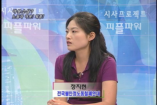 정지현/그러나 그렇다고 해서 비정규직법은 어쩔 수 없고, 오히려 늘어나는 파견노동자를 보호하기 위해서 법안을 더욱 손질하겠다는 것은 말이 안 됩니다. 실제로 파견과 같은 고용과 사용이 분리된 간접고용 형태는 오래전부터 사회적으로 옳지 못한 고용으로 금지되어 왔고 암묵적으로 용인하지 않았습니다. 그러나 파견법이 제정된 이후 파견노동자의 수는 더욱 확고히 늘어났고, 이로 인한 노동자들의