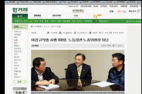 한겨레신문은 <비정규직법 개선 노사정 논의 틀 만든다>에서 “이상수 노동부 장관과 양대노총 위원장은 비정규직법 시행 이후 불거진 부작용을 해소하는 후속대책을 마련하기 위해 민주노총을 포함한 노사정 대표자 논의 틀을 꾸리기로 합의했다”며 “사용자 단체인 한국경영자총협회의 참여를 설득하기로 했다”고 보도했습니다.