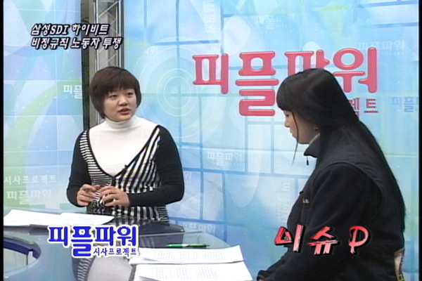 이지현/ 삼성SDI는 1998년 정규직에서 2005년 사실상의 하청업체인 사내기업으로 56개 업체 2,500여명을 전환시켰고 남아있던 23개 업체 1,239명 중에서 11개 업체 708명을 쫓아냈습니다. 또 17개 사내하청업체 2,398명 중에서 11개 업체 2,098명을 폐업 등으로 집단해고를 했고 2007년 한해에만 14개 업체 965명을 해고했습니다. 2007년 12월 브라운관 사업부의 200여명의 비정규직 노동자들은 2008년 올1월에 모두 해고되었습니다