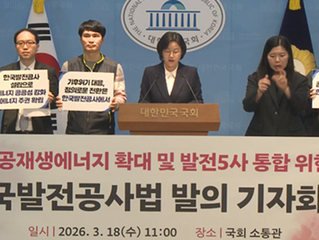 발전 공기업 5사를 통합해 공공이 재생에너지 확대를 주도하도록 하는 ‘한국발전공사법’이 발의됐다. 노동조합과 시민사회가 공동으로 참여해 마련한 법안이라는 점에서 공공 주도의 에너지 전환 요구가 본격화하고 있다. 법안은 한국남동발전·남부발전·동서발전·서부발전·중부발전 등 5개 발전공기업을...