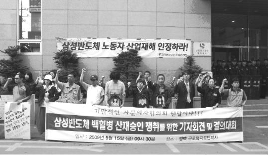 삼성전자 기흥공장의 반도체 생산현장에서 근무하다 백혈병에 걸려 사망한 노동자인 고 황유미, 고 이숙영, 고 황민웅씨에 대한 유족보상 산재신청 및...