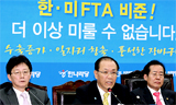 민주당 지도부 대부분은 15일 이명박 대통령의 ‘한미FTA 선비준’ 제안을 두고 기존 당론인 “선 재협상을 통한 ISD(투자자국가소송제) 폐기후...
