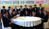 강기갑 민주노동당 의원, 조승수 진보신당 의원, 정동영 민주당 의원 등 야당 의원 40명으로 구성된 ‘한미FTA 전면 폐기를 위한 국회의원 비상...