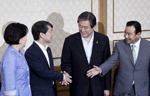 세월호 특별법 처리 약속 시한인 16일 오후 5시 김무성-안철수 양당 대표와 이완구-박영선 양당 원내대표가 직접 만나 1시간 30여분 동안 담판...