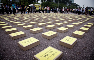 세월호 침몰 진상조사와 안전한 사회 건설을 위한 특별법 제정을 촉구하는 350만 명 서명용지가 15일 정의화 국회의장에게 전달됐다.
