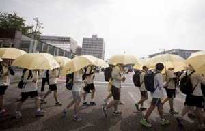 지난 15일 오후 3시 30분 안산 단원고에서부터 여의도 국회까지 이틀 동안 40여km를 걸어온 단원고 학생 43명이 세월호 특별법 제정을 위해...