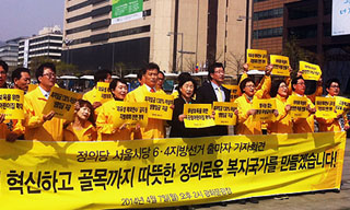 노란 점퍼 정의당, “정의로운 복지국가 만들겠다”