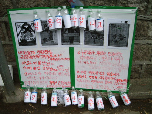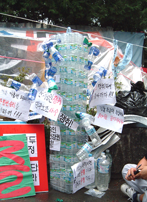 ▲ 저 탑은 단식농성자들이 마신 물병으로 만든 것이다. <%=orgin_start%> [출처: ]<%=orgin_end%> |
