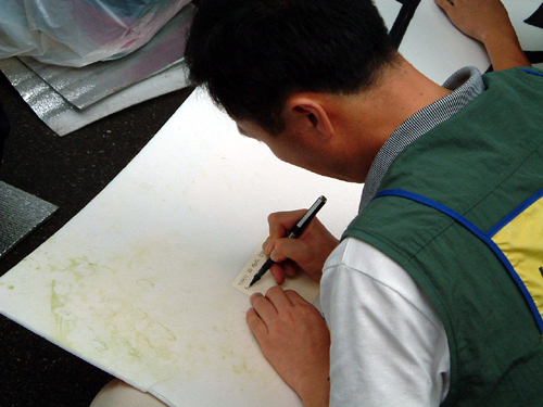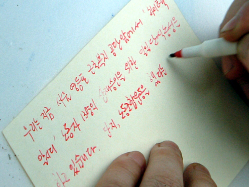 ▲ 청와대에 보낼 엽서를 정성스레 쓰는 노동자 <%=orgin_start%> [출처: ]<%=orgin_end%> |