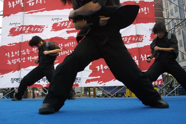 지난 10월 26일 전장연 출범식에서 몸진선언을 봤습니다. 언제나 격정적인 몸짓에 셔터도 따라 눌러집니다.