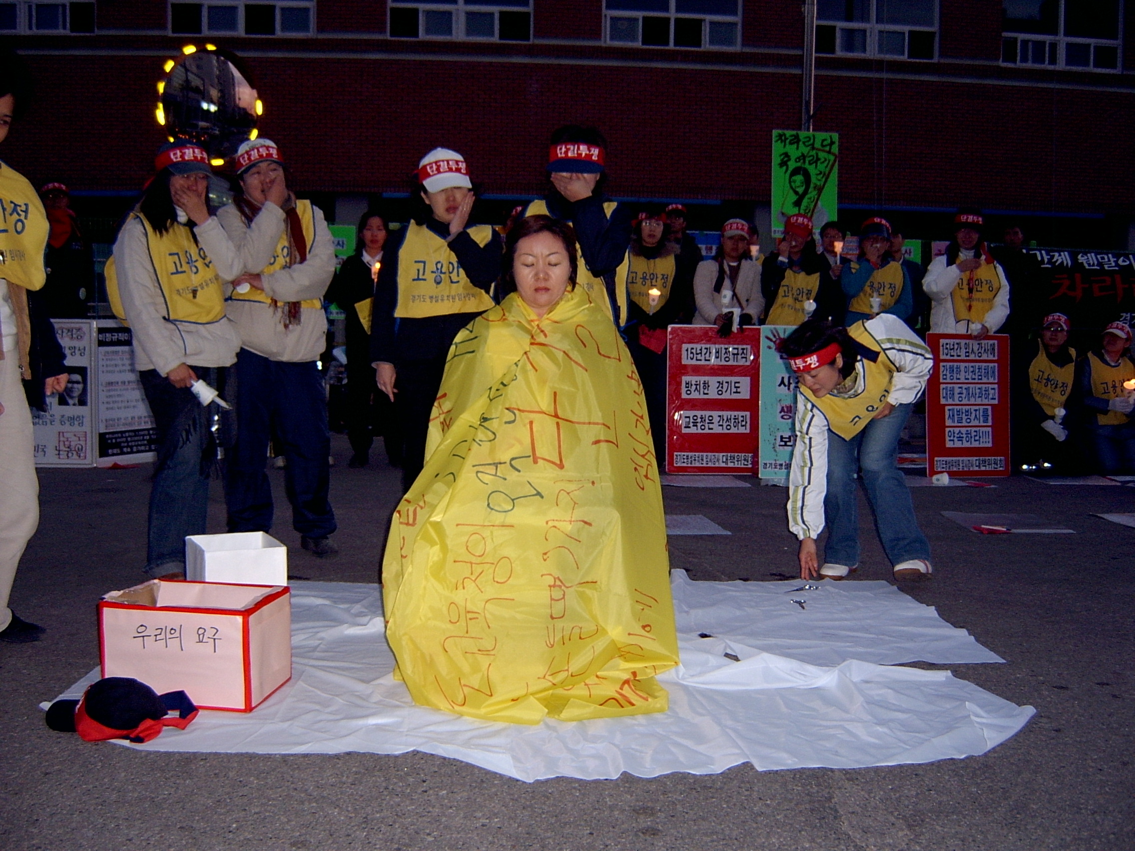 경기도 공립 유치원 비정규직 교사들은 그 동안의 단체 협약이나 관리 지침도 깨고 일방적으로 정리해고 한다는 해임을 통보한 경기도 교육청의 비상식적인 작태에 분노하여 우리들의 생존권을 지키기위해 일치 단결된 힘 투쟁할 것이다.