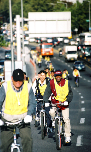 집회가 끝나고 참가한 100여명은 자전거를 나누어 타고 이용석 열사가 분신한 종묘공원에서 영등포 근로복지공단까지 행진을 했다.