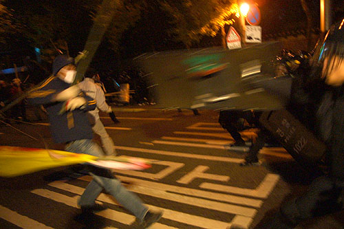 지난 토요일 민중대회를 마치고 농민들과 경찰사이의 공방전에서...