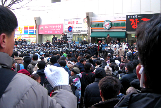 경찰과의 대치 장면 |