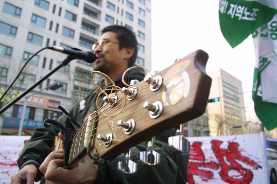 지난 월요일에 월곡동 철거민 투쟁 결의대회에 갔다가 민중가수 박준동지가 나오셔서 몇 방 찍어 봤습니다.