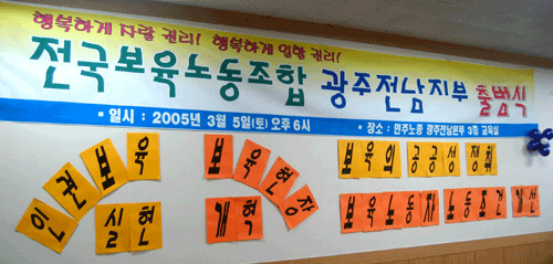2005년 3월 5일에 있었던 전국보육노동조합 광주전남지부 출범식입니다.