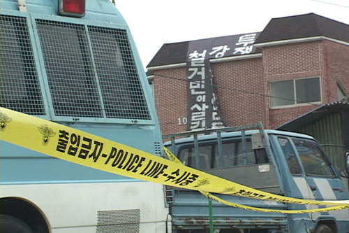 ▲ 오늘로 경찰 대치 나흘째. 전경들 뒤로 오산 수청동 철대위가 보인다. 개발 고지 1년을 기준으로 보상 해당자와 비해당자가 나뉘는데, 그 1년이라는 기준에 의해 철대위의 가옥주들은 투기꾼으로 몰려버린 상태. 투기꾼이라면 그렇게 목숨 걸고 싸우진 않을 터. 그 안에 들어가면 수많은 사연들이 있을 거다. <%=orgin_start%> [출처: ]<%=orgin_end%> |