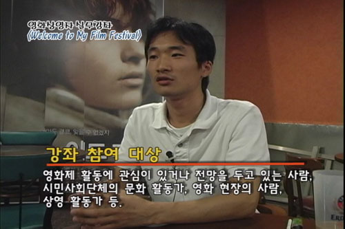 김: 여러분은 혹시 내가 좋아하는 영화를 내 친구들에게 보여주고 싶다는 생각을 해보신 적이 있나요? 이런 소망들이 어쩌면 영화제라는 축제의 시작인지도 모릅니다. 독립영화배급지원센터에서는 이렇게 작은 영화제들을 내 손으로 만들어보고 싶은 사람들을 위해 특별한 강의를 준비했습니다. <Welcome to My Film Festival>이라는 제목으로 영화상영자 실무강좌가 오는 8월부터 10월까지 10주간에 걸쳐서 진행될 예정인데요. 오늘은 그에 대한 자세한 소식을 준비했습니다. 그러면 지금부터 함께하시죠.