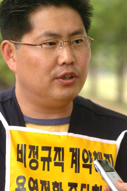 이런 가운데 최호섭 뉴코아노조 사무국장을 만났다. 뉴코아노조는 원래 정규직 노동자들로 구성되어 있었다. 그러나 이번 사건을 겪으면서 비정규직 노동자들을 적극 조합원으로 조직하고 투쟁을 만들어가고 있다.