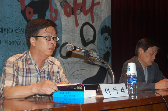 ▲ '코뮌주의적 생태문화사회구성체 요강' 토론에서 이득재 교수가 발제를 하고 있다. |