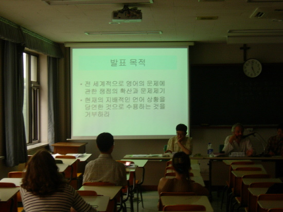 이어서 영어 원어민은 전 세계 인구의 5-6% 정도 밖에 되지 않는데 나머지 95%의 비원어민에게 그것을 강요하는 것이 과연 바람직한가와 전 지구적 소통을 추구할 때 사실상 제국의 무기로 사용되고 있는 영어를 유일한 언어로 삼고 나머지를 배척하는 것이 어떤 결과를 나을지를 생각해 봐야 한다고 역설했다.