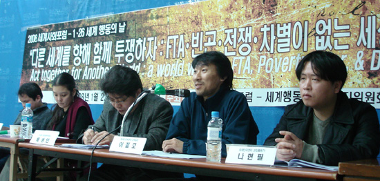 2008년 세계사회포럼-세계행동의 날 주간 행사로 '신자유주의 세계화 반대 투쟁과 국제연대 운동의 전망' 토론회가 22일 민주노총에서 진행됐다.