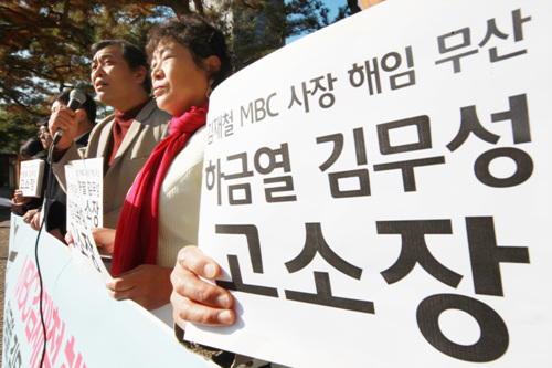 언론노조는 15일 오후 서울중앙지방법원 앞에서 기자회견을 열어 김무성 새누리당 총괄선대본부장이 지난 10월 23일, 김충일 방문진 이사에게 전화를 걸어 “김재철을 지키라”고 압박을 가했고, 하금렬 대통령실장 역시 김충일 이사에게 전화를 걸어 해임안 부결을 압박했다고 주장했다.