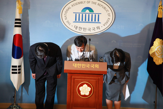 3인의 공동대표는 중앙위 결과 집계가 끝난 14일 오전 11시에 국회 기자회견장에서 중앙위 결과 발표와 사퇴 기자회견을 열었다.