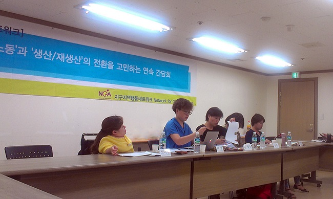 “무슨 일 하세요?”라는 질문을 던지며 노동과 생산/재생산의 문제에서 “당연한 듯 빠져있었던 이야기”를 해 보기로 한 우리는 지난 9월 4일, <생산하는 사람, 재생산하는 사람, 재생산되는 사람>이라는 제목으로 두 번째 간담회를 열었다. 지구지역행동네트워크 GP 팀장 나영 씨, 노동자계급정당추진위원회 회원 유현경 씨, 청소년인권행동 아수나로의 공현 씨, 장애여성공감 부설 장애여성독립생활센터 [숨] 소장 조미경 씨의 발제와 평등사회노동교육원 부원장 임혜숙 씨의 사회로 진행된 이번 간담회는 자본주의-가부장제라는 체제 속에서 ‘자본주의적 생산성을 갖춘 이성애자 비장애인 성인 남성’이 아닌 이들의 생산/재생산이 어떤 위치에 놓이고 있는지를 살피는 자리였다.