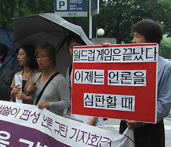 다산인권센터, 문화연대, 인권운동사랑방 등 6개 문화인권단체는 토고전과 스위스전으로 한창 ‘월드컵’이 주가를 올리던 지난 19일과 23일, 전체 80%를 월드컵 특집방송으로 편성하는가 하면 메인 뉴스 프로그램 30꼭지 중 20여 꼭지를 월드컵 뉴스로 할애했던 방송3사에 대한 규탄 기자회견을 MBC와 SBS 앞에서 진행한 바 있다.