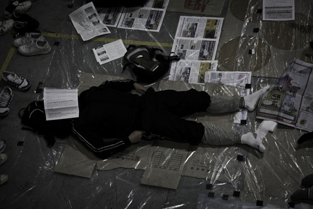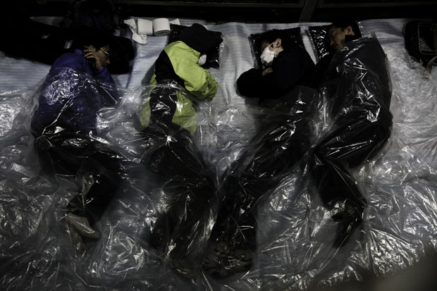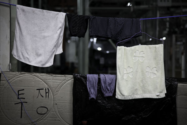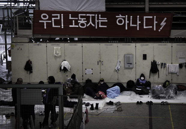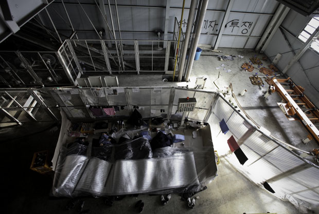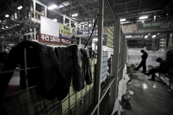 ▲ 준비된 공장 점거가 아녔던 탓에 농성 초기 비정규직 노동자들은 비닐을 덮고 잤다. |