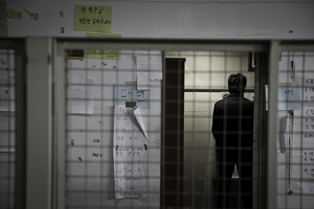 ▲ 농성 초기 매일 아침 화장실은 전쟁이었다. 그러나 농성이 장기화 되고 먹는 양이 줄어들자 화장실 줄도 따라서 줄어들었다. |