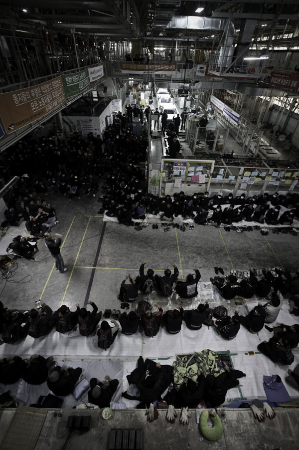 2010년 대법 판결은 현대차 비정규직 사내하청 노동자들에겐 한줄기 희망이 됐다. 그리고 그해 겨울 초입 사내하청 비정규직 노동자들은 현대차 울산 1공장 2층 CTS(도어 탈착) 공정라인 점거에 들어간다. 이로 인해 1공장 의장라인은 완전히 멈췄다. 대법원 판결이 났으니 현대자동차가 사내하청 비정규직들이 현대차의 정규직 사원임을 인정하고 비정규직 노조(지회)와의 교섭을 통해 정규직화를 하라는 요구였다.