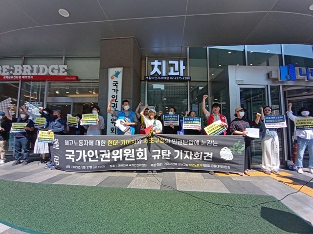 ▲ 5월 27일, 서울 중구 국가인권위원회 앞에서 진행된 ‘해고노동자에 대한 현대·기아차와 서초구청의 인권탄압에 눈감는 국가인권위원회 규탄’ 기자회견 장면 [출처: 기아차 판매 내부고발 해고노동자 박미희 공동대책위원회] |