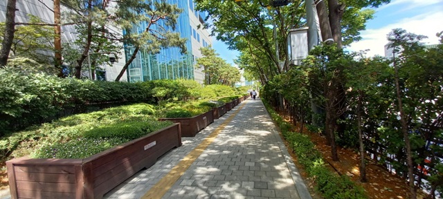 ▲ 현대기아차가 서울 양재동 본사 앞 인도에 설치한 대형 화분들 [출처: 연정] |